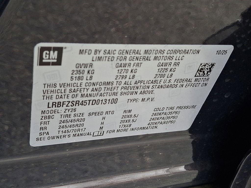 - Tires, P245/45R20 all-season