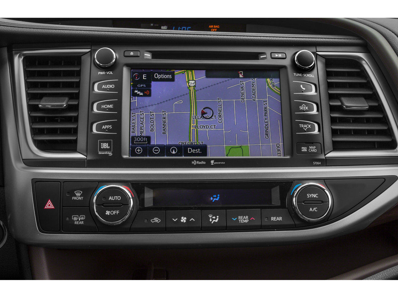 - Radio: Entune Premium Audio w/Nav & App Suite -inc: the Entune Multimedia Bundle (8-inch high resolution touch-screen w/split screen display, AM/FM CD player, MP3/WMA playback capability, six speakers, auxiliary audio jack, USB 2.0 port w/iPod connectivity and control, advanced voice recognition, hands-free phone capability, phone book access and music streaming via Bluetooth® wireless technology), Entune App Suite, Intelligent Touch Controls, SiriusXM Radio w/3-month complimentary trial, HD radio, HD predictive traffic and doppler weather overlay, AM/FM cache radio, and Gracenotes album cover art